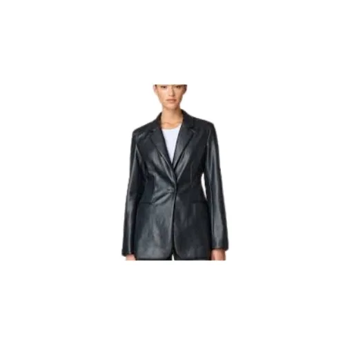 Fitted Grey Faux-Leather Blazer